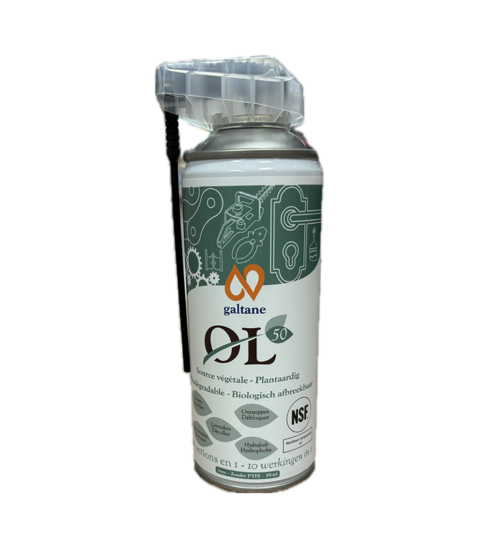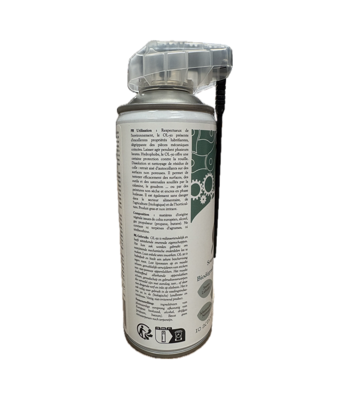 - Respectueux de l’environnement, le "OL50" présente un bon pouvoir solvant et est une alternative végétale aux huiles minérales pétroles. "OL 50 spray" est un produit fluide, gras et classé non dangereux et facilement biodégradable. Il permet d’accroître la durée de vie de votre matériel.
